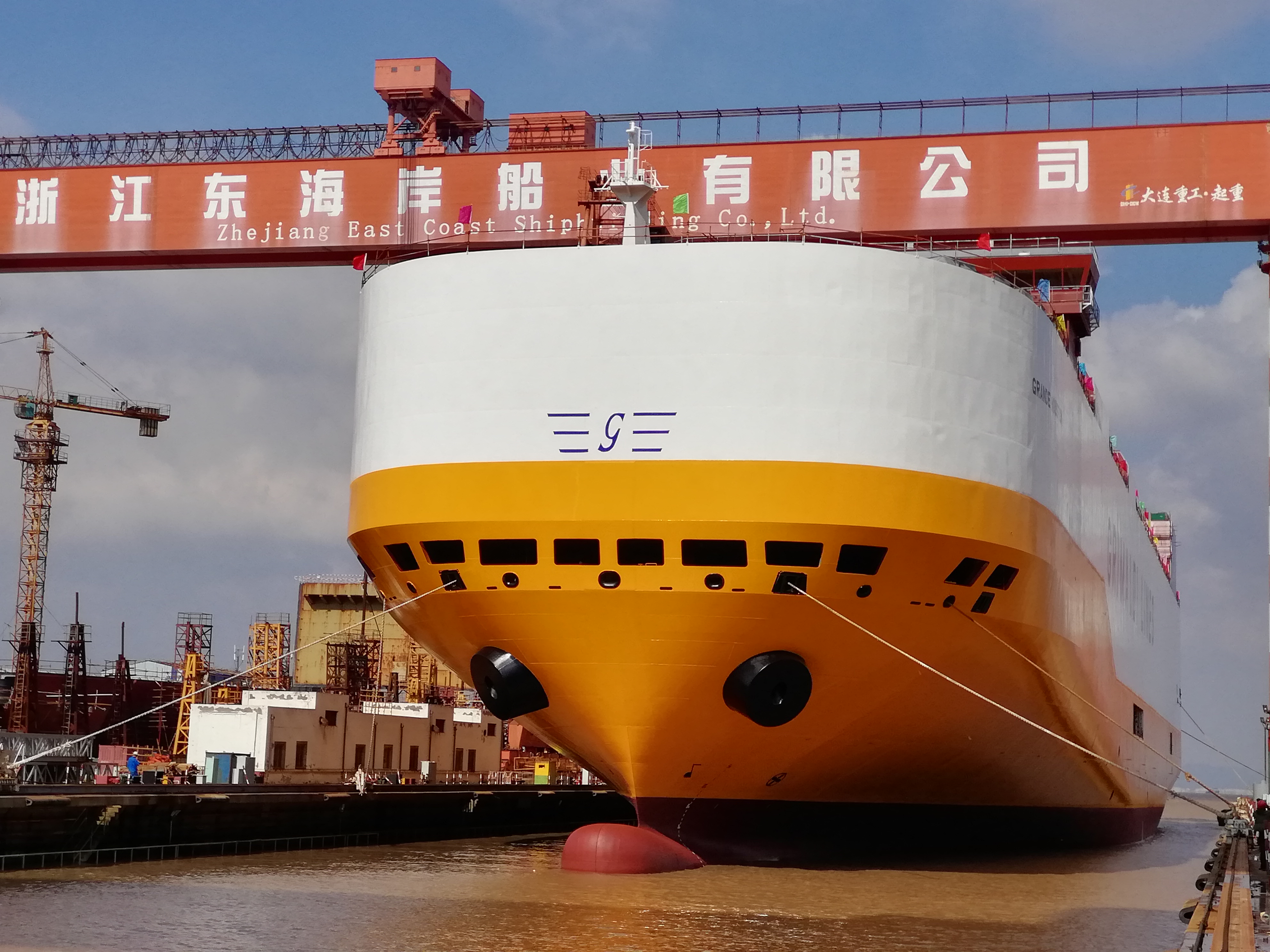 2019年10月19日上午,揚(yáng)帆集團(tuán)下屬浙江東海岸船業(yè)有限公司一艘7800PCTC系列汽車(chē)滾裝船順利下水,出塢狀態(tài)完整性超越已交付的兩艘系列船。