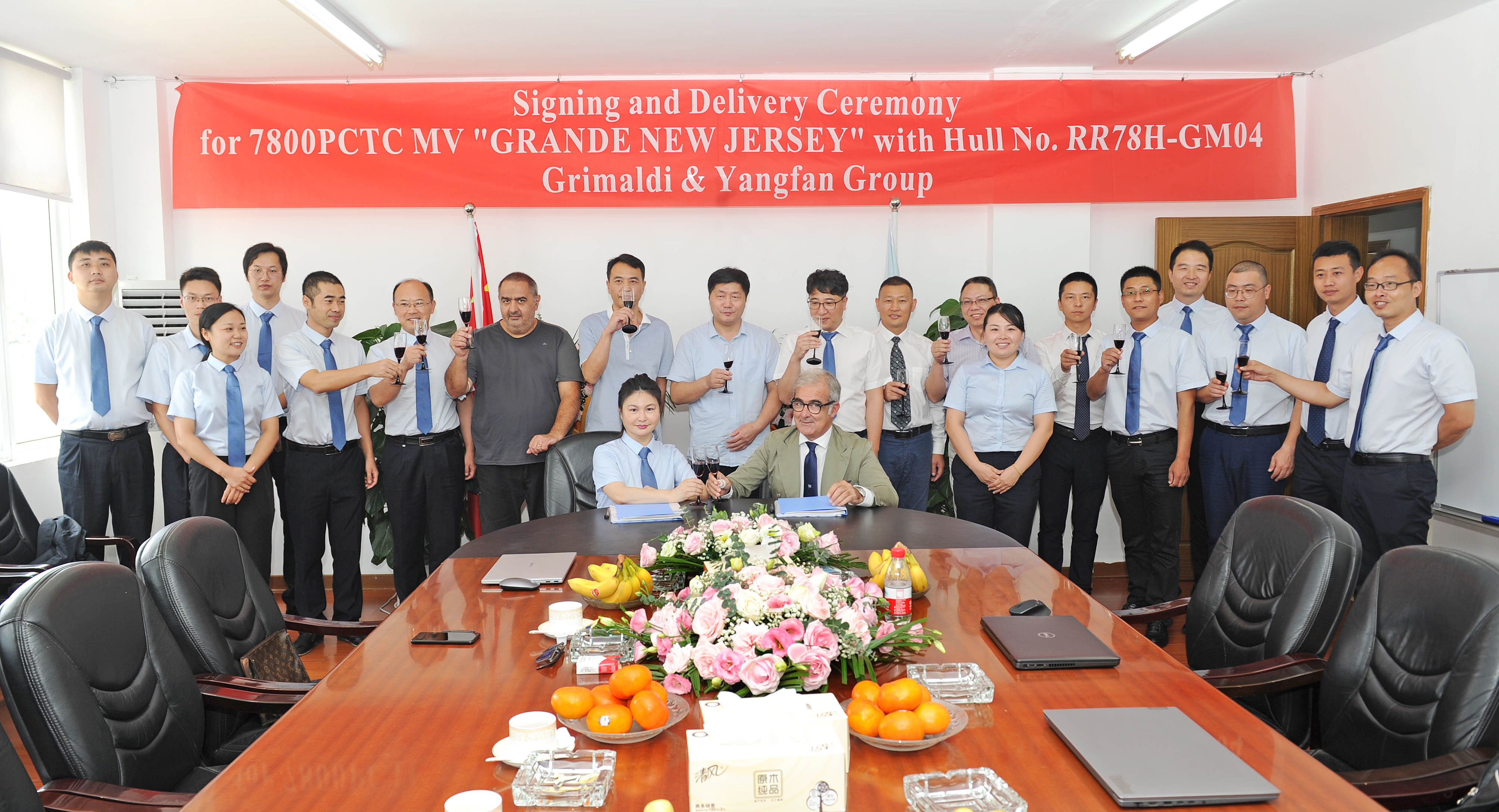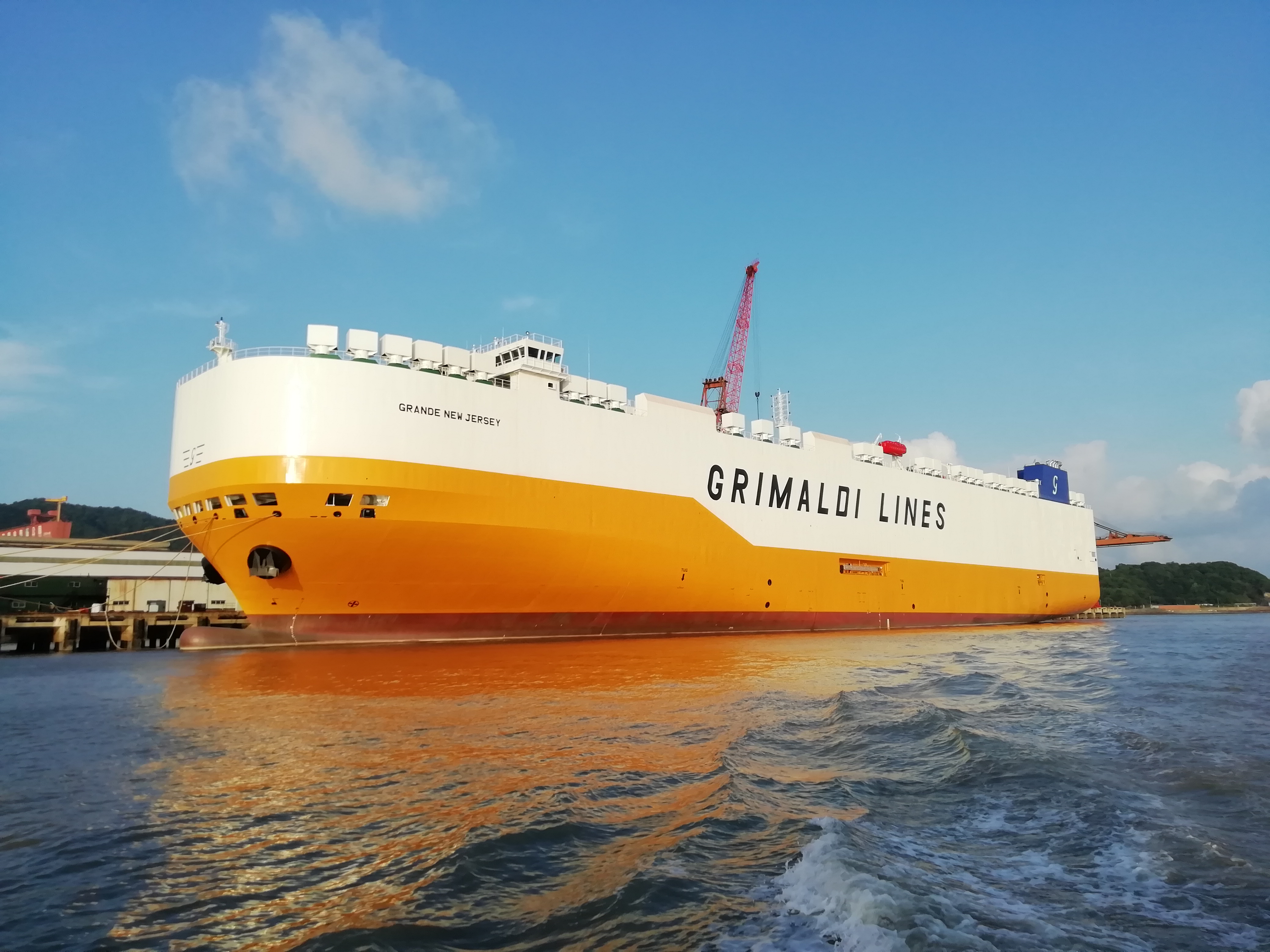 2020年9月2日,揚(yáng)帆集團(tuán)股份有限公司下屬浙江東海岸船業(yè)有限公司承建的7800車位汽車運(yùn)輸船(PCTC)系列船“GRANDE NEW JERSEY”號(hào)(GM04)正式簽字交付。該船從出塢到一次試航成功碼頭周期不到80天。船東對(duì)該船的各項(xiàng)性能指標(biāo)非常滿意。