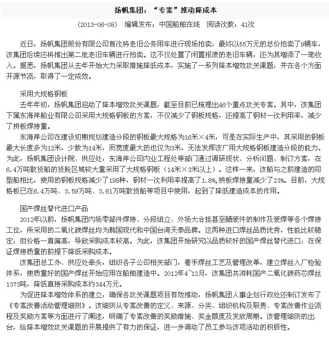 中國(guó)船舶在線(xiàn):揚(yáng)帆集團(tuán):“專(zhuān)案”推動(dòng)降成本