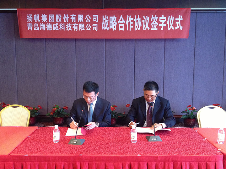 本著平等互利,共同發(fā)展的原則,4月25日,揚帆集團股份有限公司與青島海德威科技有限公司簽訂了戰(zhàn)略合作協(xié)議。由雙方代表揚帆集團董事長李明東和海德威CEO曹學良在合同上簽字。