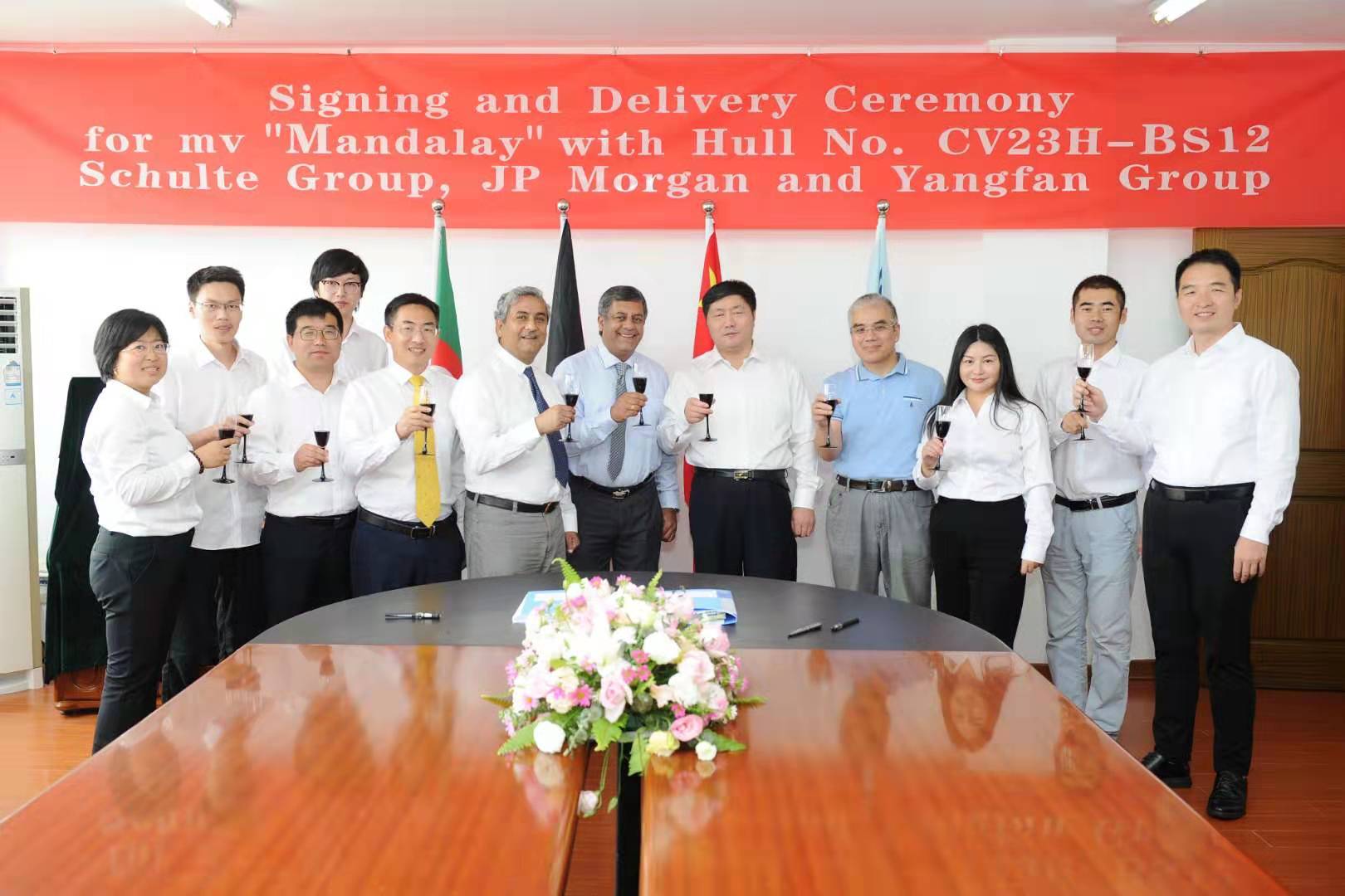 9月5日上午,揚帆集團下屬浙江東海岸船業有限公司建造的一艘2339箱環保節能型集裝箱船正式簽字交付。